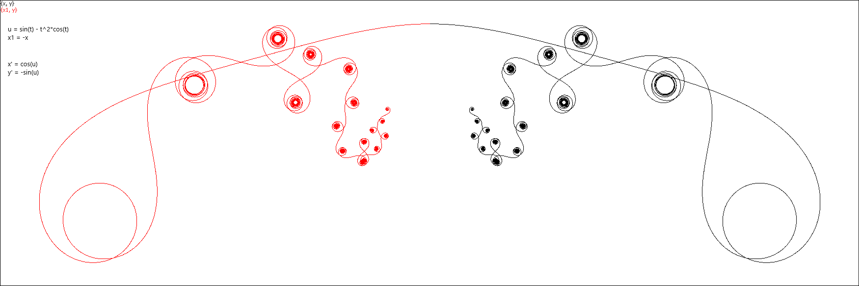 Then, just for having nothing else to do, I played a bit with the parameters. Wow! Beside looking as fancy ornaments, these curves behave like a kind of fractals, and these two parameters affect their appearance in a quite unpredictable way.